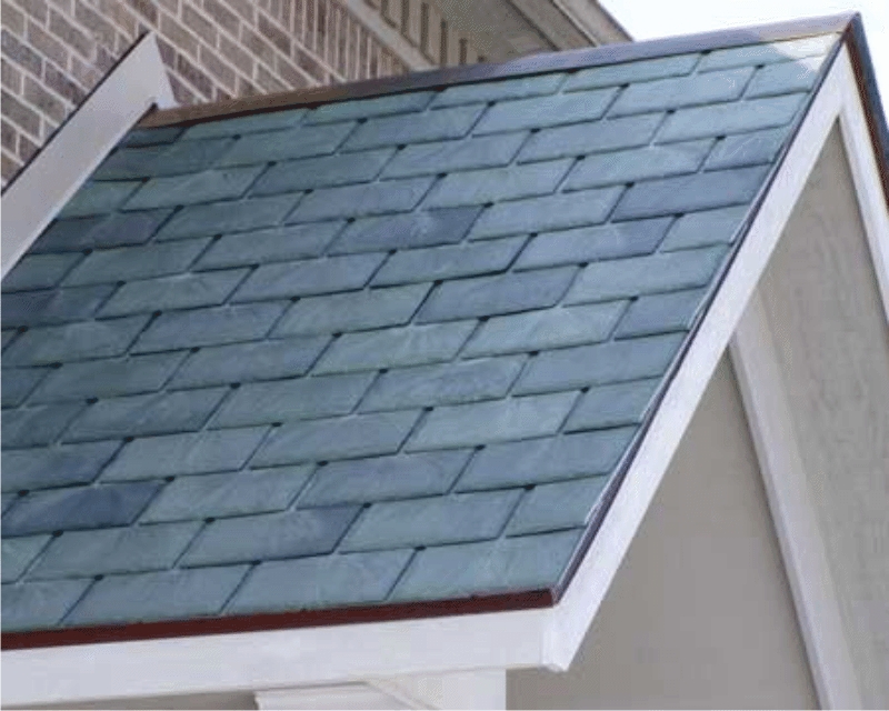 The architectural elegance of this slate-like product comes from the patented molding process that creates varied edges and surfaces for a natural effect, adding a premium value to homes without the high cost and diffi cult maintenance of authentic slate.